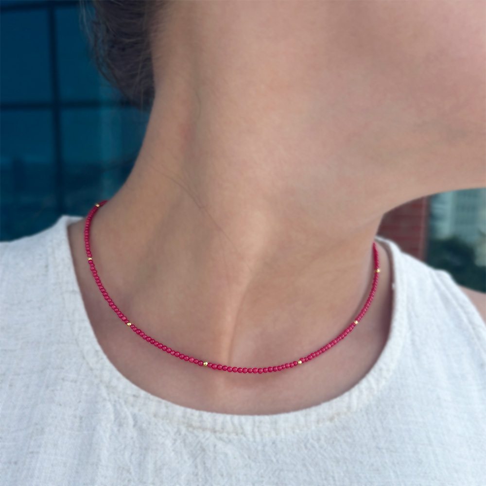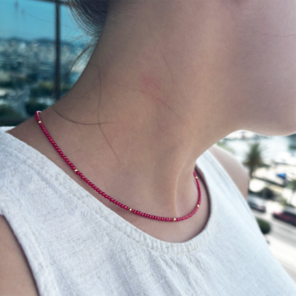 Κολιέ με χρυσά στοιχεία Κ14 και κοράλλι - M117184C
