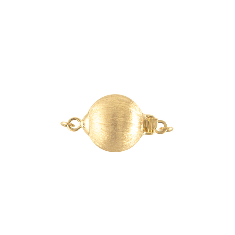 • Ένα λαμπερό χρυσό κούμπωμα 14 καρατίων με διπλή ασφάλεια σε σχήμα μπίλια διαμέτρου 10 χιλιοστών.