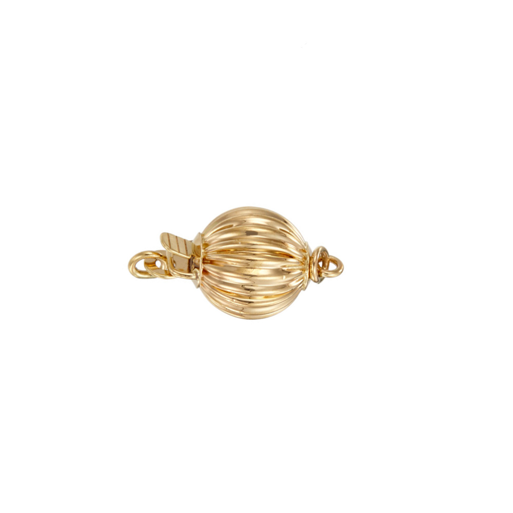 • Ένα λαμπερό χρυσό κούμπωμα 14 καρατίων με διπλή ασφάλεια σε σχήμα μπίλια διαμέτρου 8 χιλιοστών.