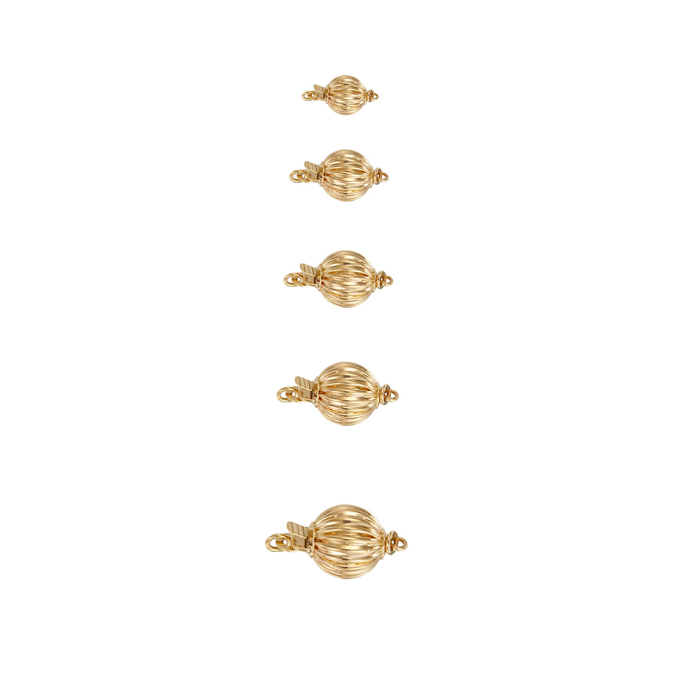 • Ένα λαμπερό χρυσό κούμπωμα 14 καρατίων με διπλή ασφάλεια σε σχήμα μπίλια διαμέτρου 10 χιλιοστών.