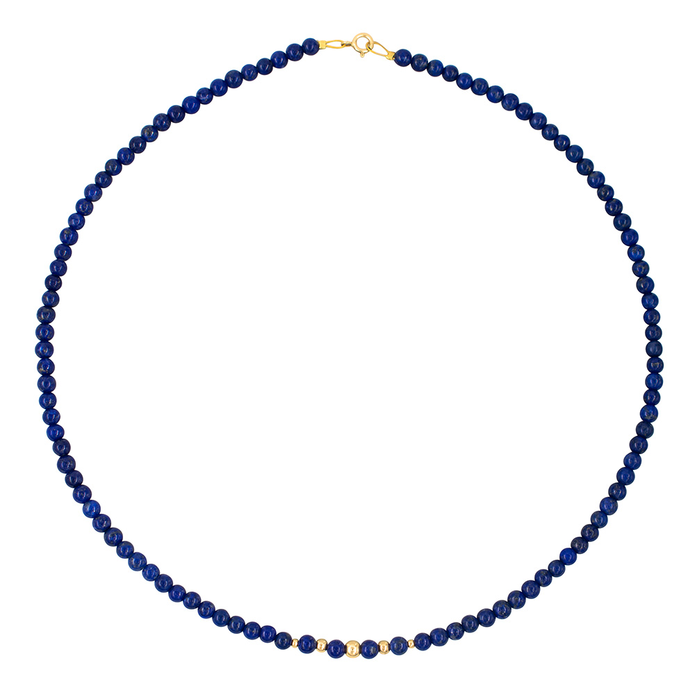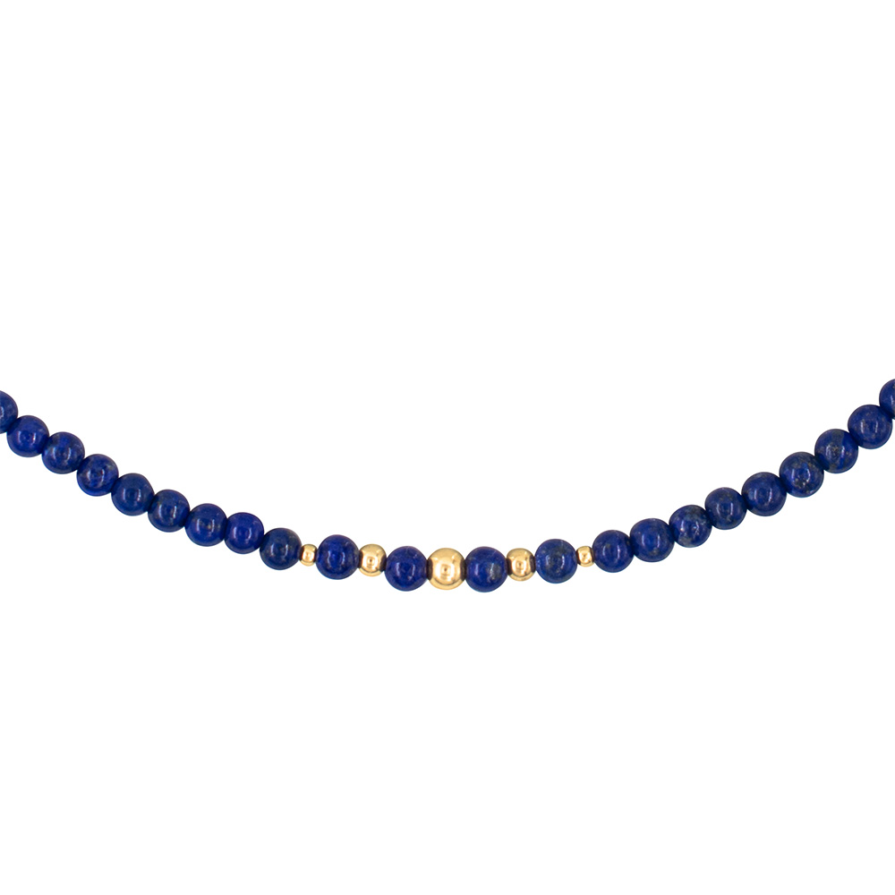 Ένα μοντέρνο κολιέ που συνδυάζει το απόλυτο χρώμα του λάπις με τη λάμψη του χρυσού, που θα ολοκληρώσει κάθε σας εμφάνιση.