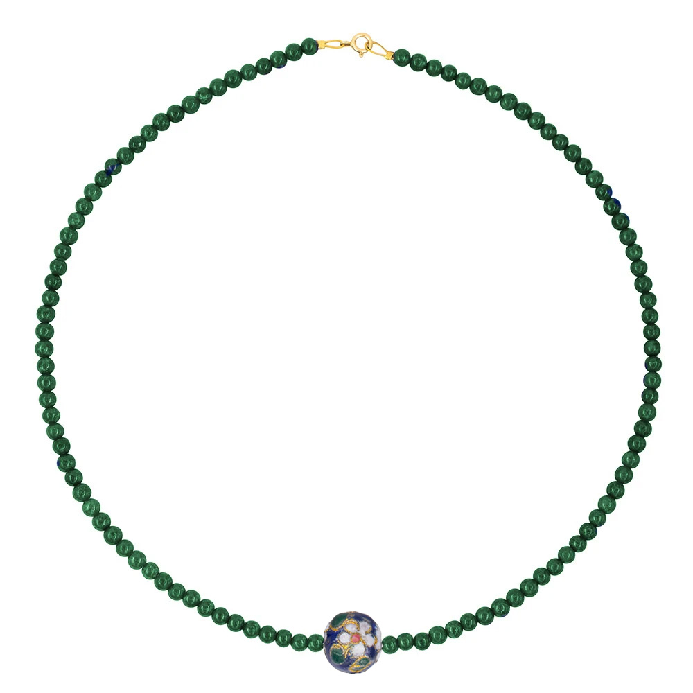 Νέο Κολιέ με 925 ασημένιο επιχρυσωμένο κούμπωμα, μαλαχίτη και μενταγιόν cloisonne - F1252285