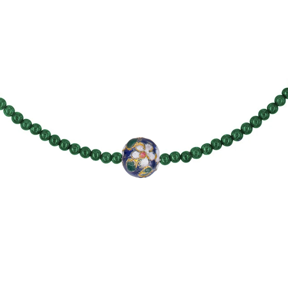 Κολιέ με 925 ασημένιο επιχρυσωμένο κούμπωμα, μαλαχίτη και μενταγιόν cloisonne - F1252285