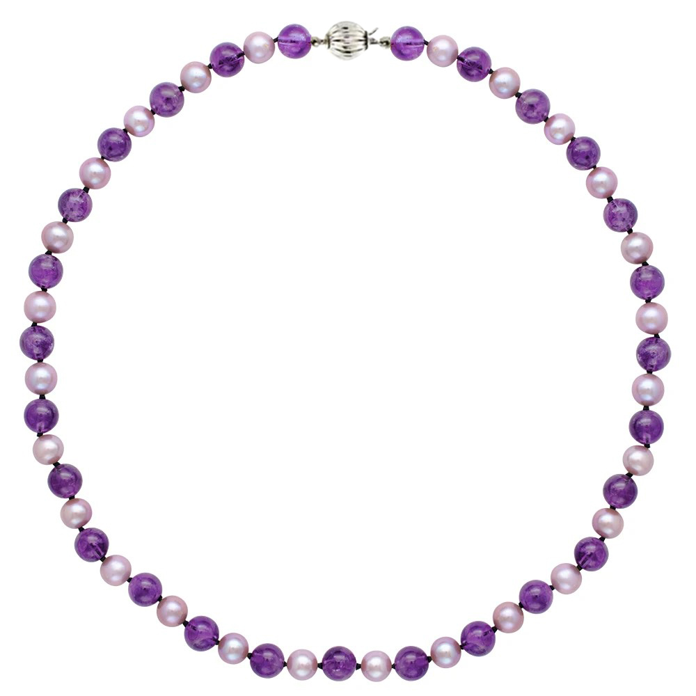 Ένα εντυπωσιακό κολιέ για τις γυναίκες που επιθυμούν να συνδυάσουν την πολυτέλεια των μαργαριταριών με τη λάμψη του αμέθυστου.