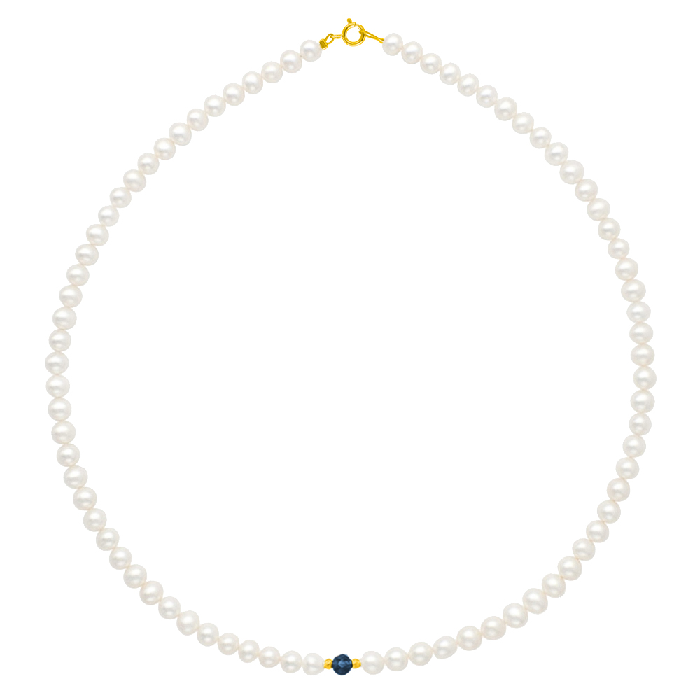 • Ένα υπέροχο κολιέ από λευκά μαργαριτάρια γλυκού νερού Fresh Water Pearl διαμέτρου 4,5 - 5 χιλιοστών.
