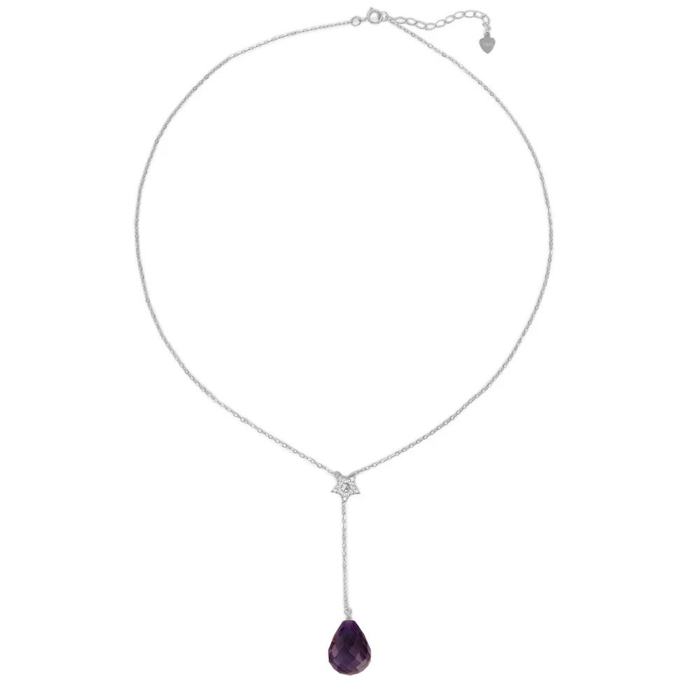 -9% Κολιέ με αμέθυστο και ζιργκόν σε ασημένια αλυσίδα 925 - S124336A