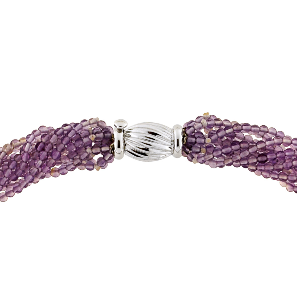 • Ένα υπέροχο κολιέ από 10 σειρές ημιπολύτιμους λίθους Αμέθυστου διαμέτρου 2 - 2,5 χιλιοστών.