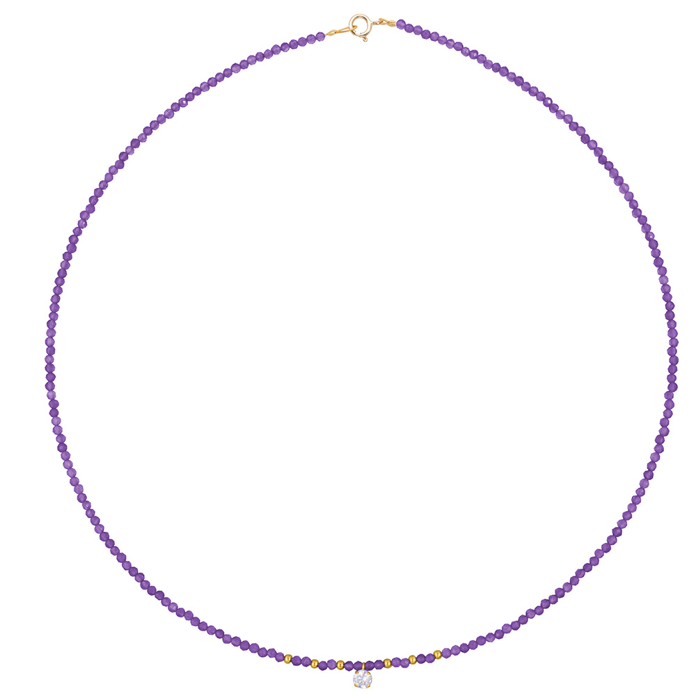 Κολιέ με Κ14 χρυσά στοιχεία, μενταγιόν με ζιργκόν και αμέθυστο - F125966