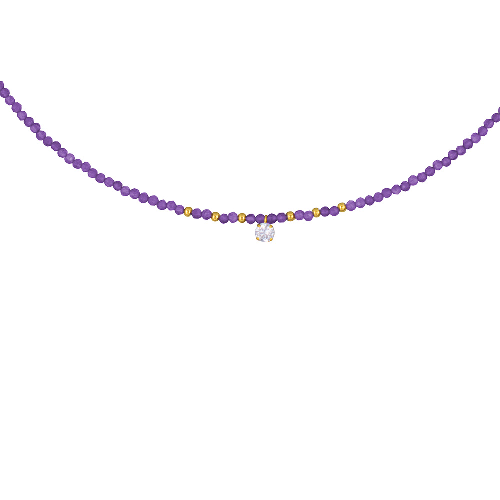 • Ένα υπέροχο κολιέ με φασεταρισμένο ημιπολύτιμο λίθο αμέθυστου διαμέτρου 2,5 χιλιοστών.