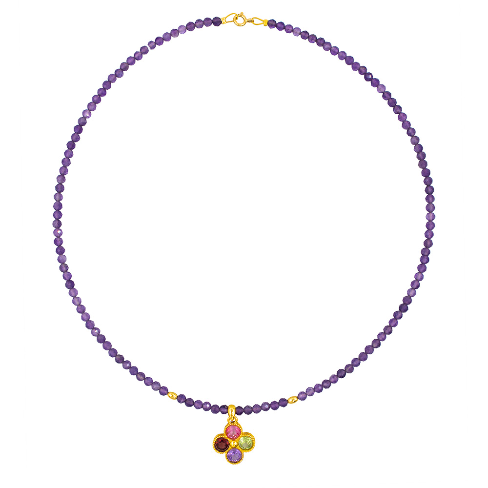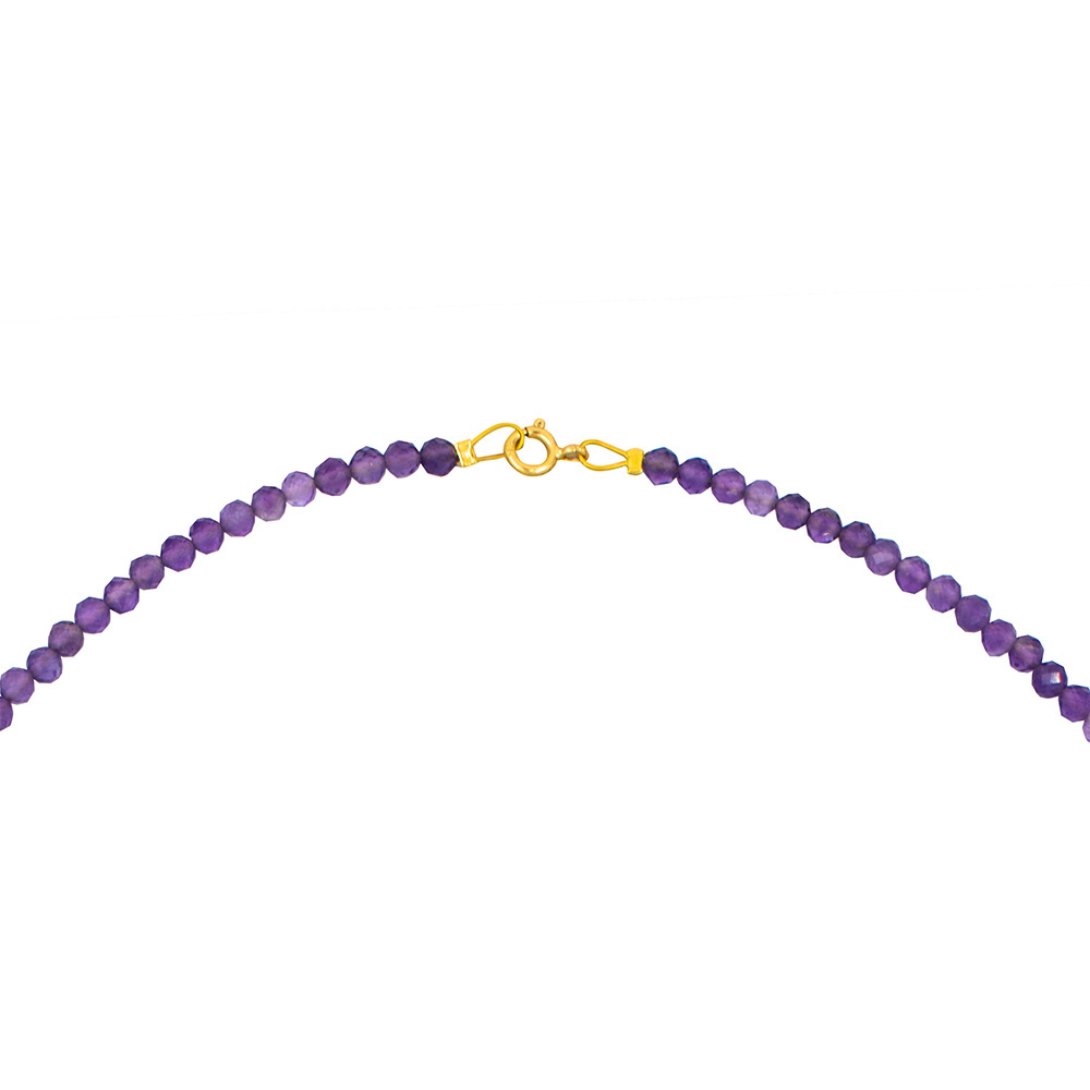 • Ένα υπέροχο κολιέ με ημιπολύτιμο λίθο φασεταρισμένου αμέθυστου διαμέτρου 3,5 χιλιοστών.