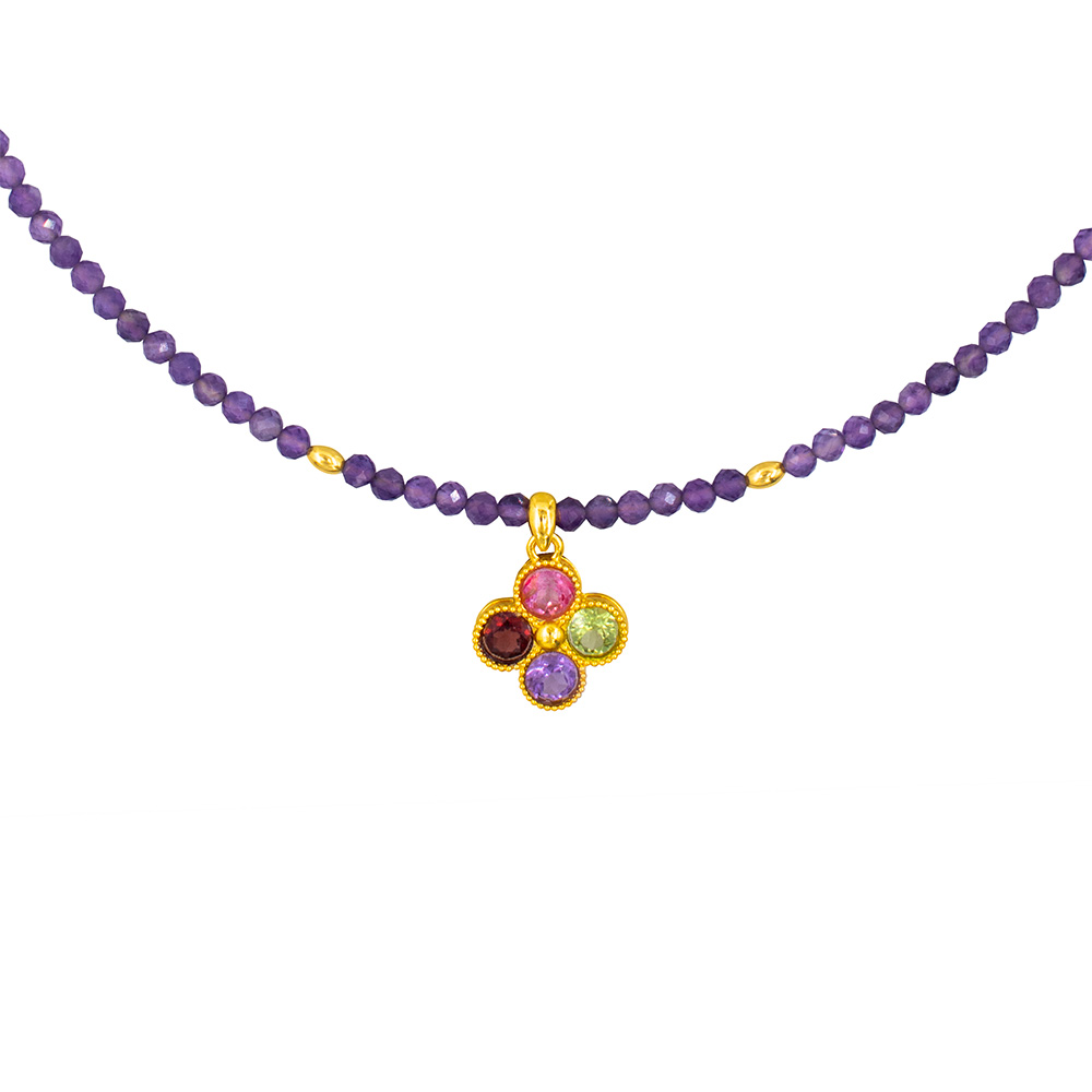 Κολιέ με Κ18 χρυσό μενταγιόν, αμέθυστο και ζιργκόν - F125962