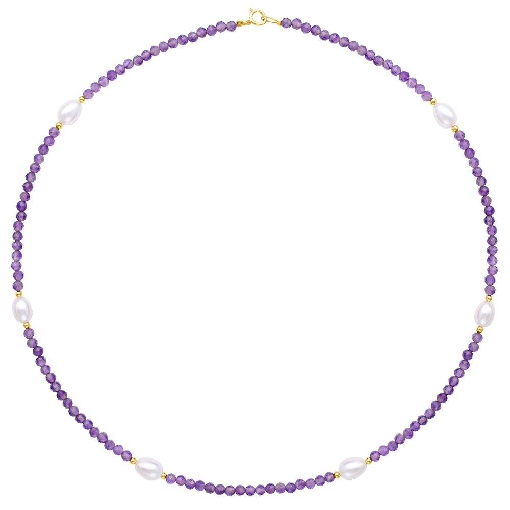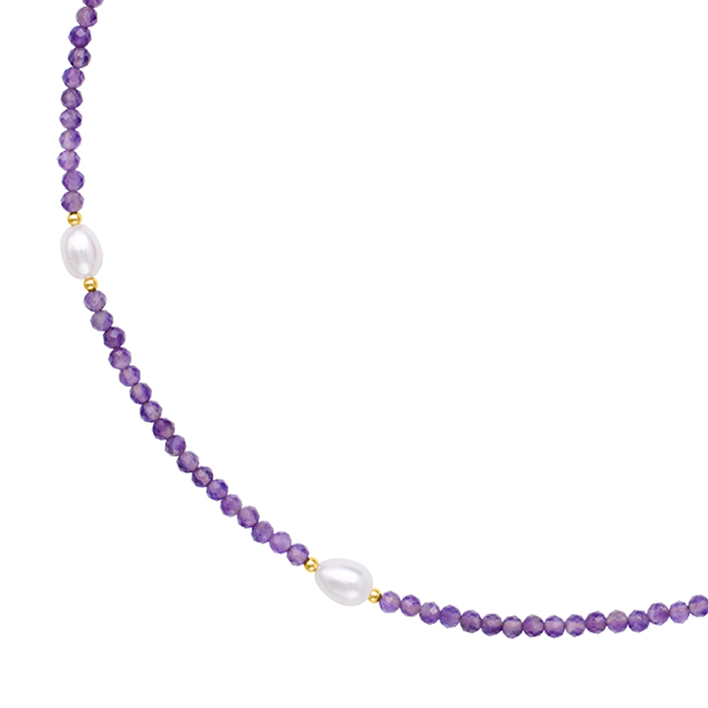 Κολιέ με Κ14 χρυσά στοιχεια, amethyst και λευκά μαργαριτάρια - F124407