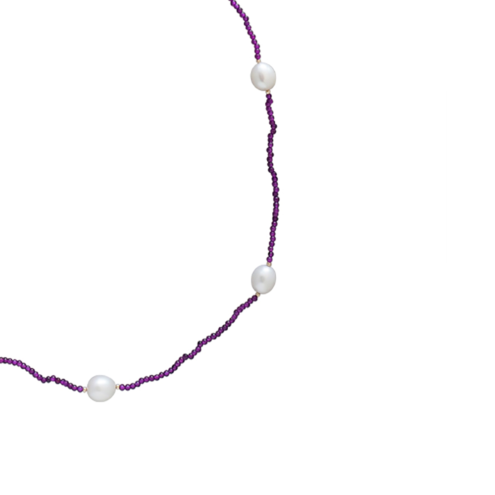 -10% Κολιέ με Κ14 χρυσά στοιχεία, αμέθυστο και μαργαριτάρια - M119920A