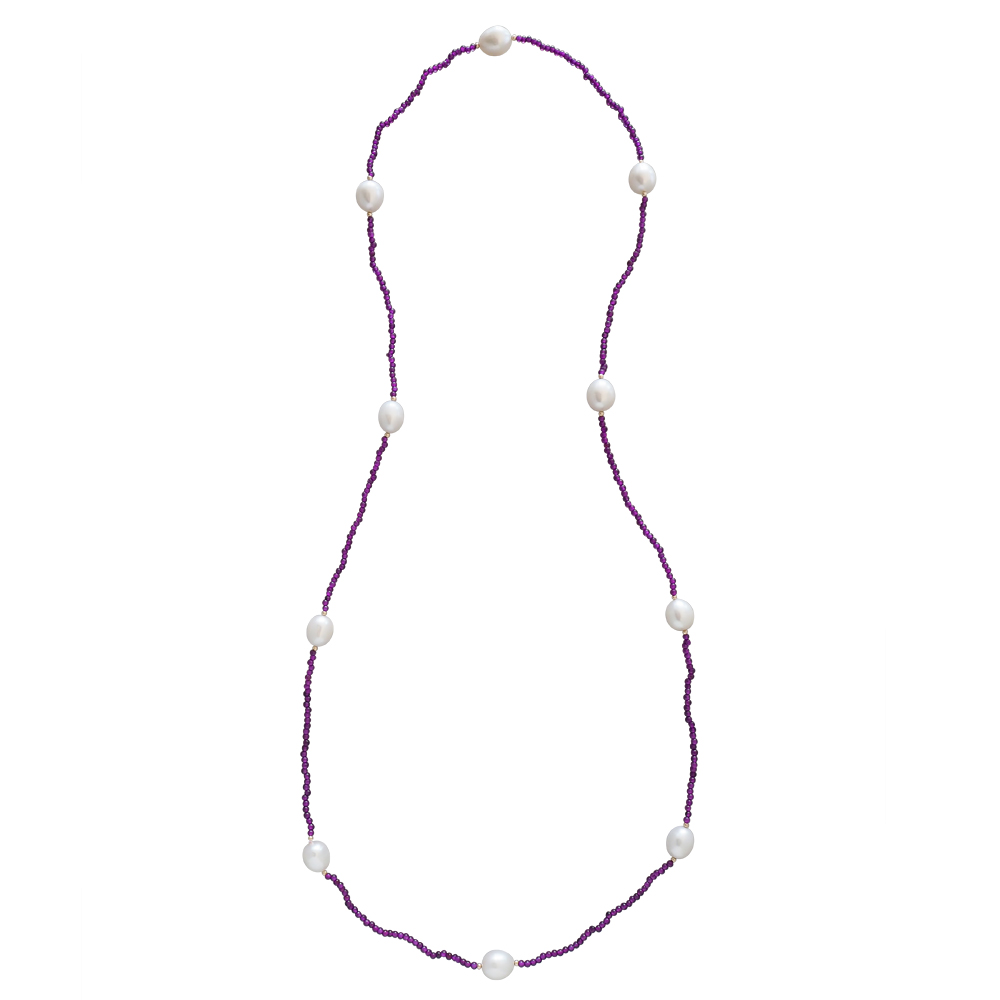 • Ένα μοναδικό κολιέ με αμέθυστο διαμέτρου χιλιοστών και 10 μαργαριτάρια Fresh Water Pearl διαμέτρου 8 x 10 χιλιοστών άριστης ποιότητας.