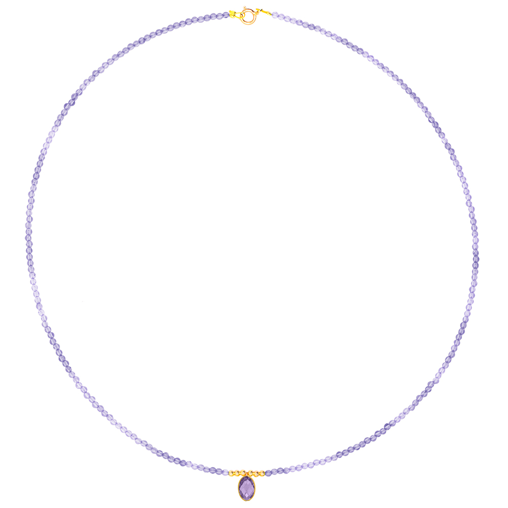 • Ένα υπέροχο κολιέ με ημιπολύτιμο λίθο Amethyst διαμέτρου χιλιοστών και χρυσό κούμπωμα Κ14.