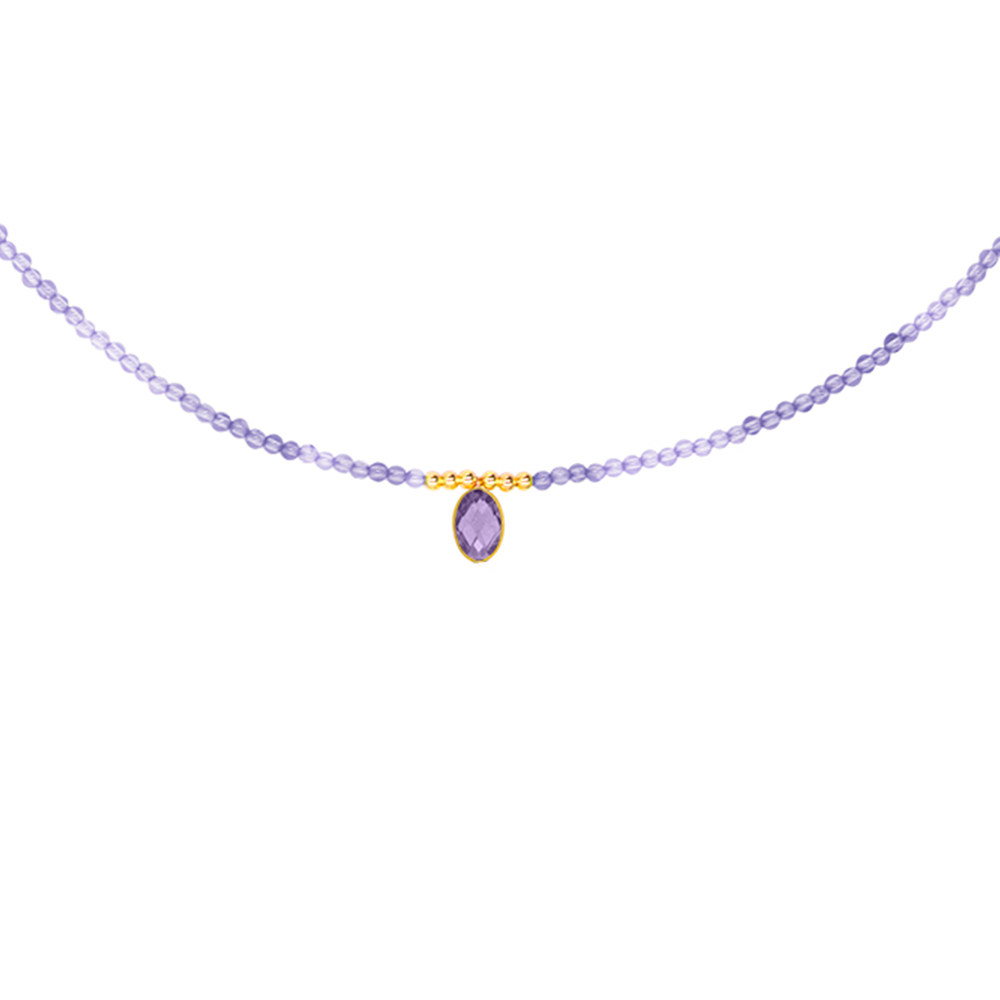 Κολιέ με Κ14 χρυσά στοιχεία και αμέθυστο - F124158A