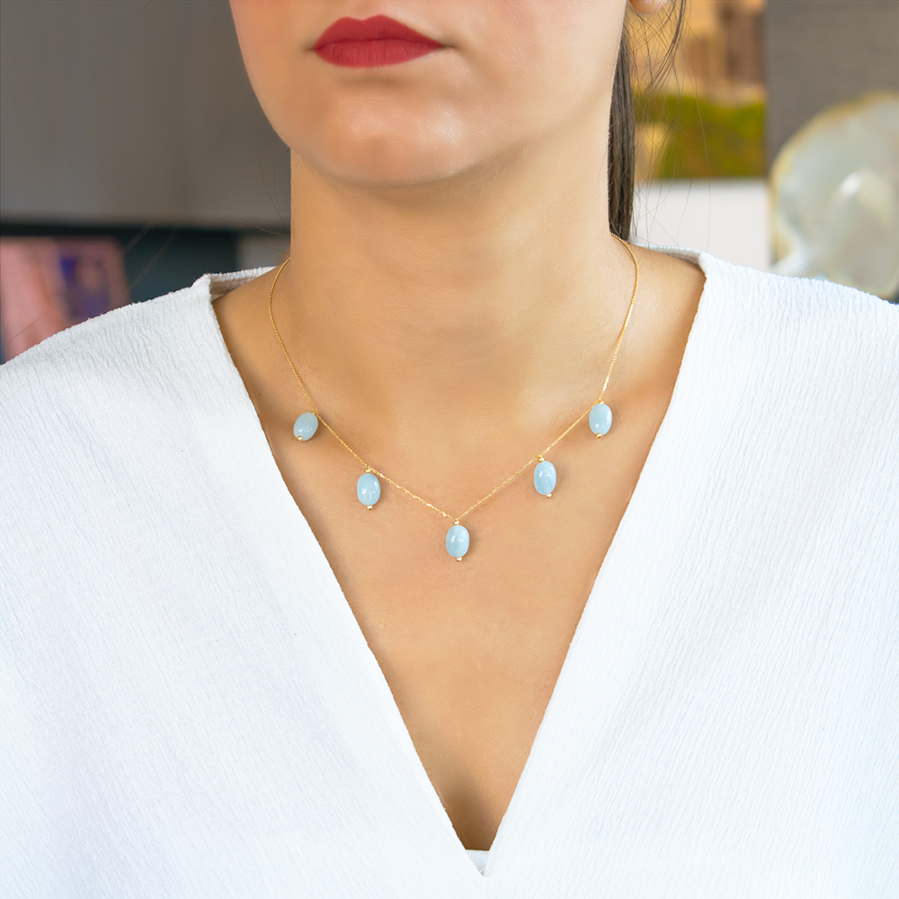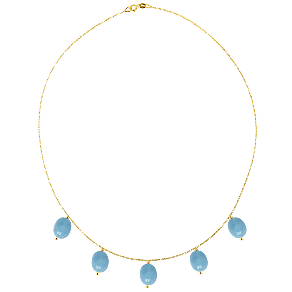 • Ένα υπέροχο κολιέ με 5 Aqua διαμέτρου 8 - 10 χιλιοστά σε σχήμα Οβάλ, άριστης ποιότητας.