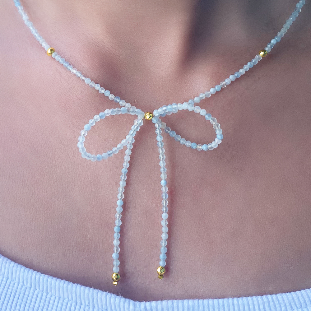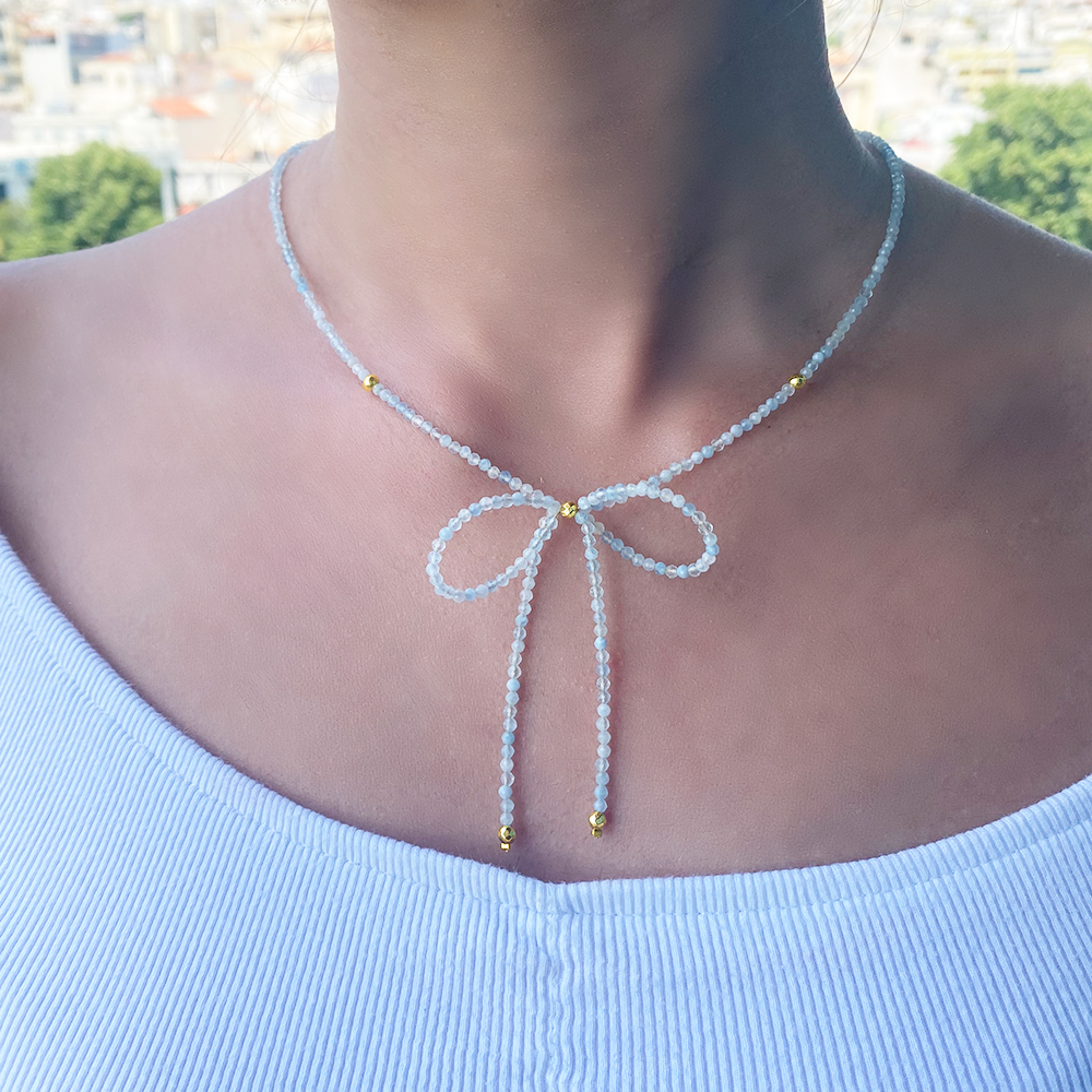 • Ένα υπέροχο νεανικό κολιέ με φασεταρισμένους ημιπολύτιμους λίθους aqua διαμέτρου 2,5-3 χιλιοστών.
