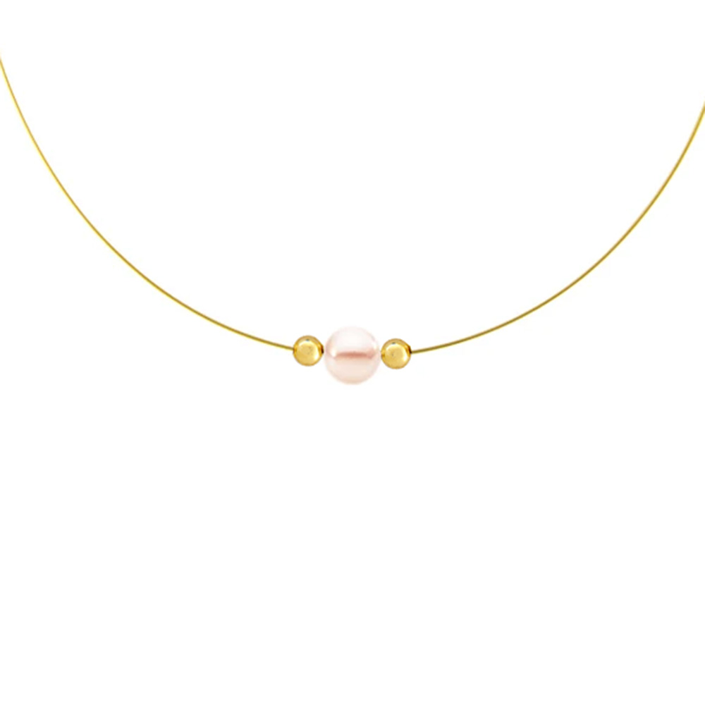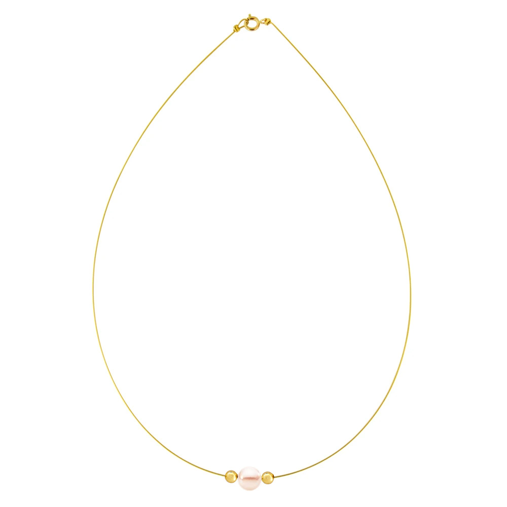 Κολιέ με Κ14 χρυσά στοιχεία και σομόν μαργαριτάρι - F1252283S