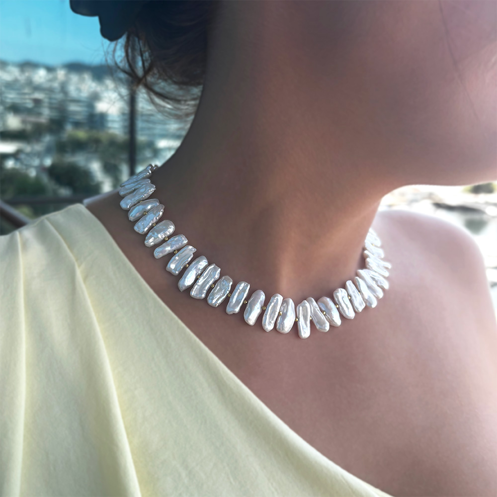 Ένα εντυπωσιακό και μοντέρνο κολιέ για τους λάτρεις των Baroque μαργαριταριών.