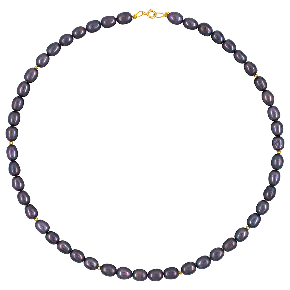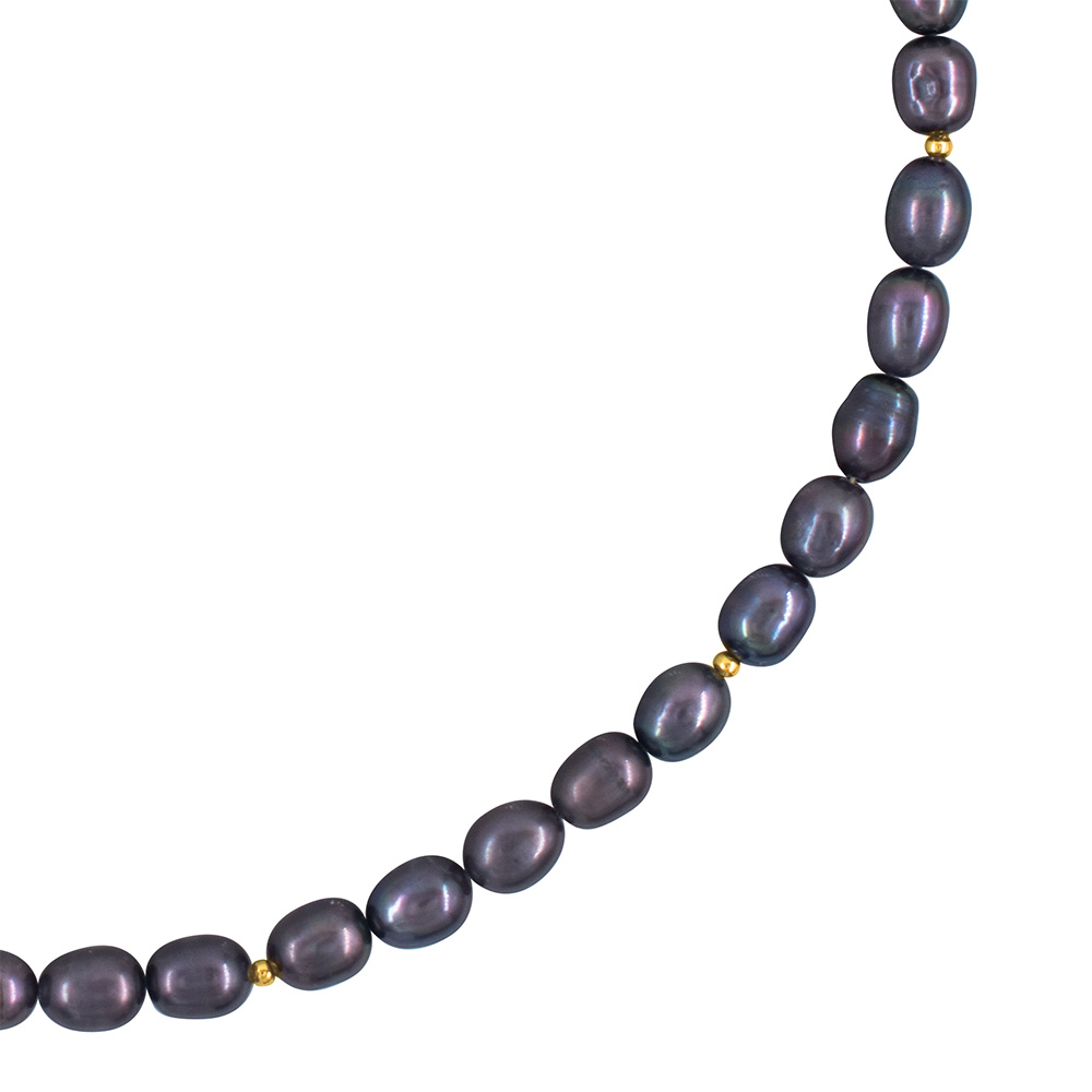 Κολιέ με Κ14 χρυσά στοιχεία και μαύρα μαργαριτάρια - F125718