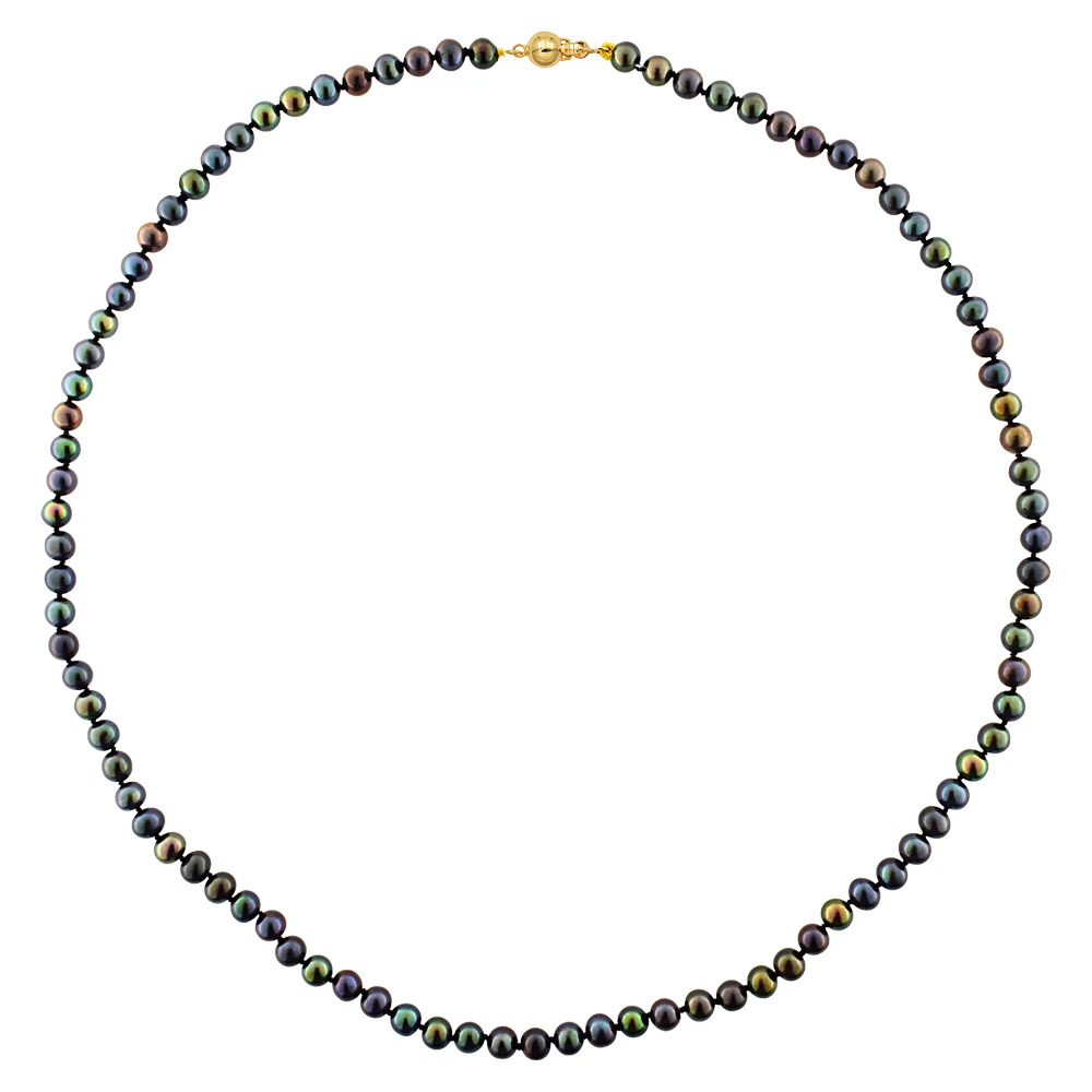 • Ένα υπέροχο κολιέ με μαύρα μαργαριτάρια Fresh Water Pearl διαμέτρου 5- 5,5 χιλιοστών, με ιδιαίτερους ιριδισμούς.