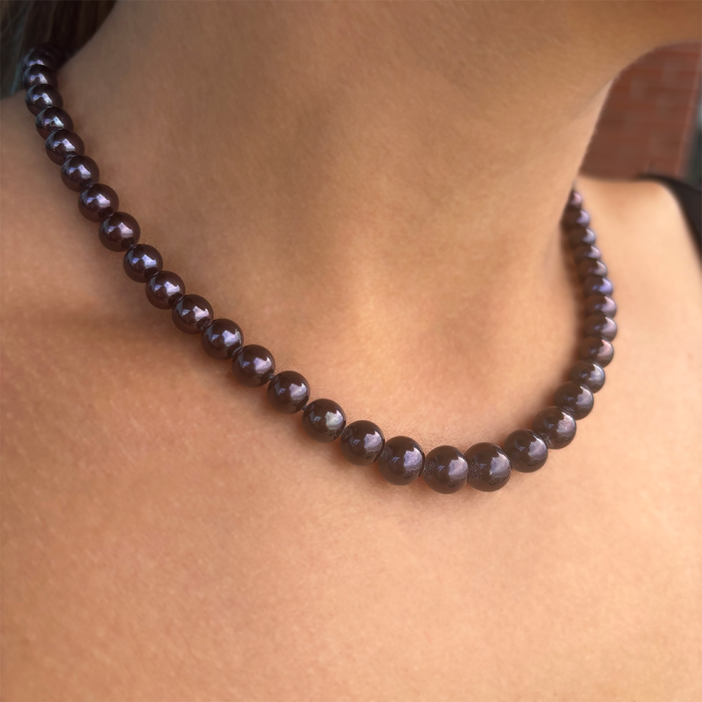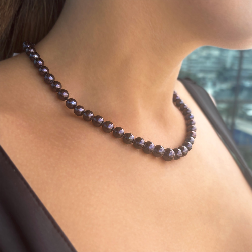 • Ένα υπέροχο κολιέ με μαύρα στρόγγυλα μαργαριτάρια Fresh Water Pearl διαμέτρου 5-10 χιλιοστών.