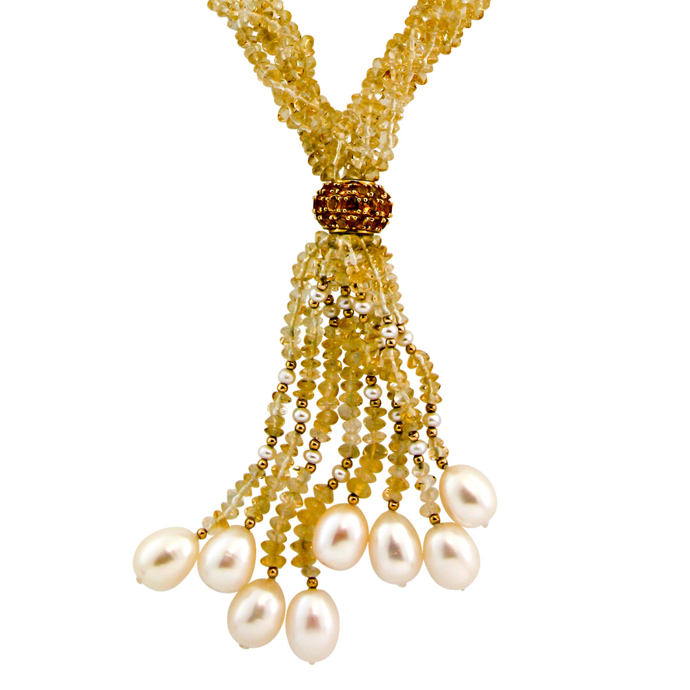Κολιέ με Κ18 χρυσά στοιχεία, Citrine και μαργαριτάρια - M117864