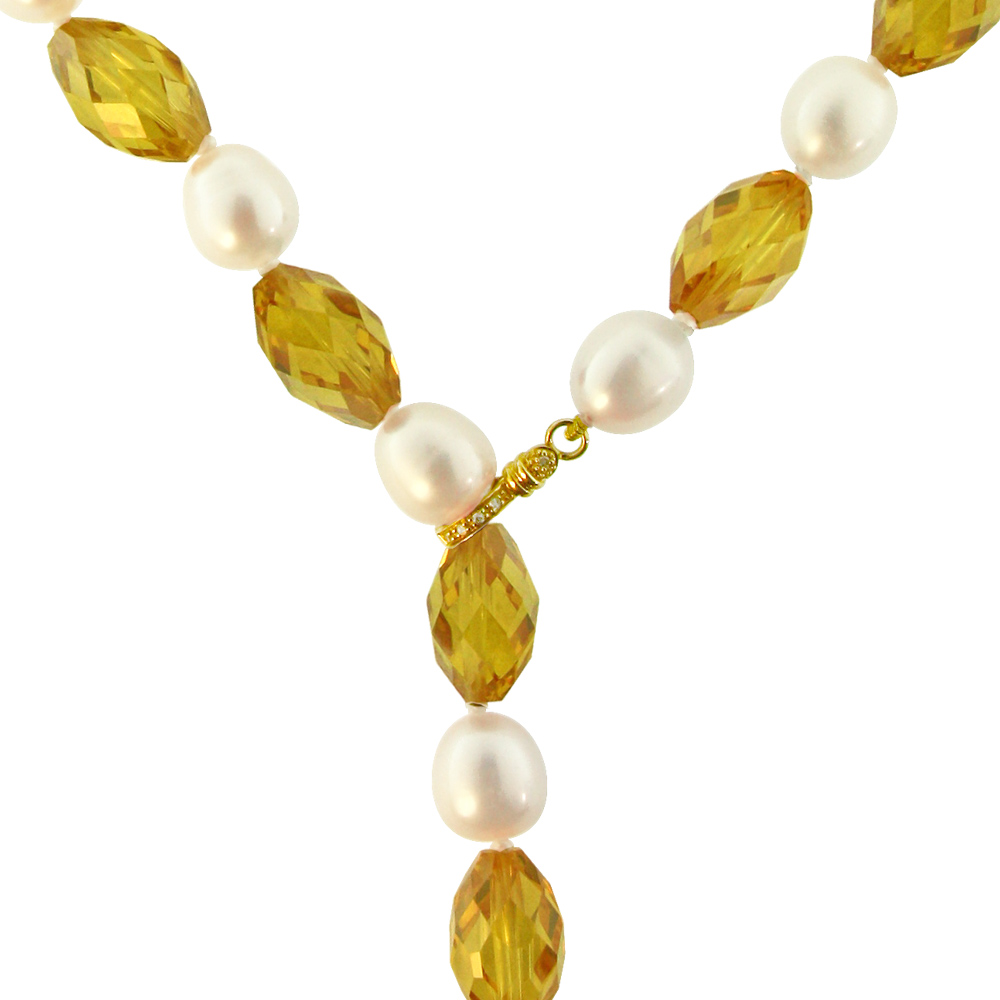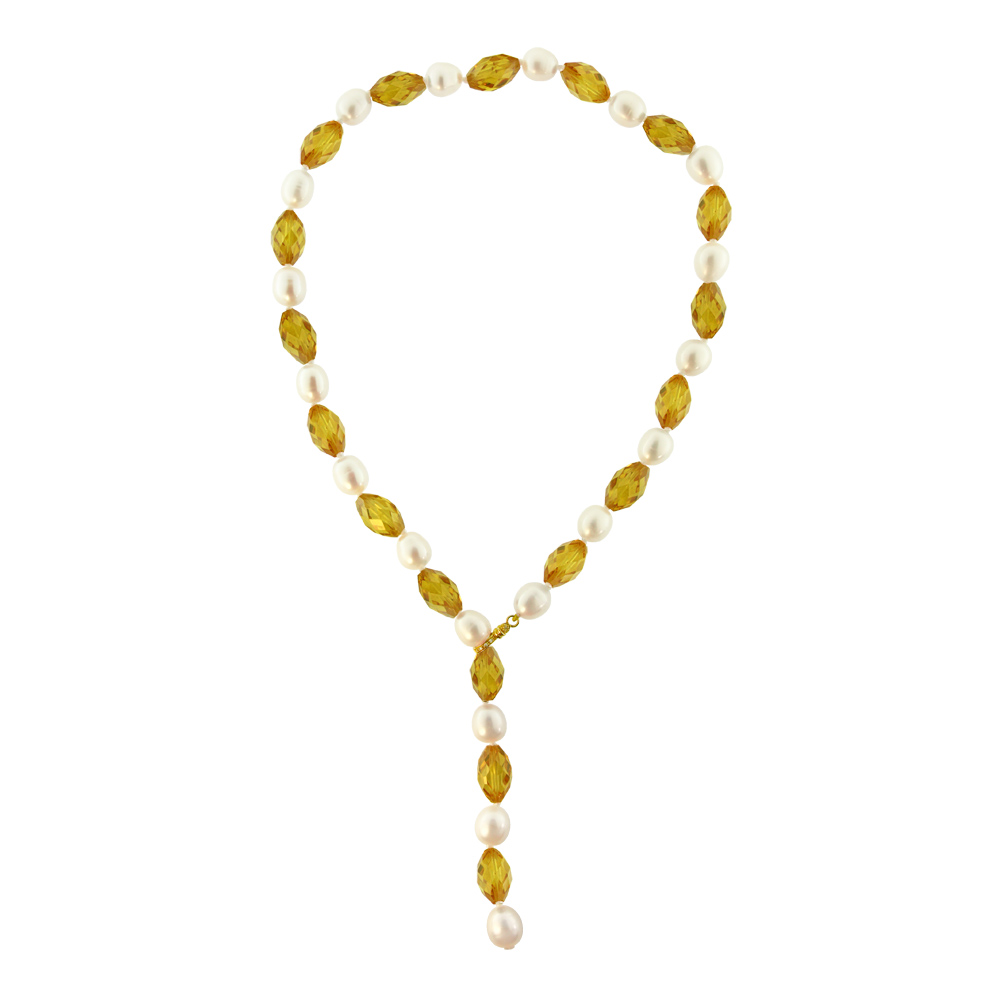Κολιέ με Κ18 χρυσό κούμπωμα, citrine και μαργαριτάρια - M319296C