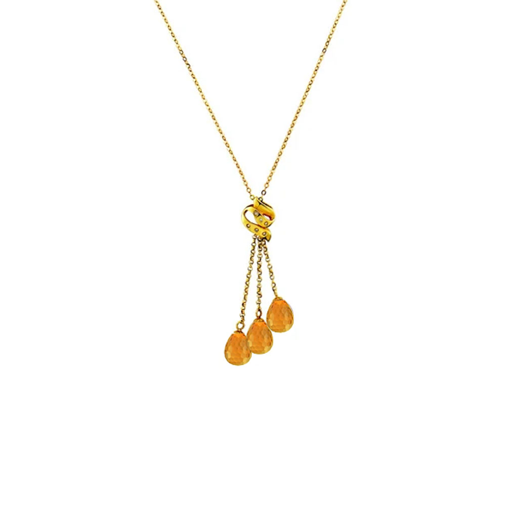 • Ένα μοναδικό κολιέ με  ημιπολύτιμους λίθους Citrine CZ πολυεδρικής κοπής, διαμέτρου 7 x 10 χιλιοστών σε σχήμα Drop (σταγόνα), σε χρυσή αλυσίδα 18 καρατίων.