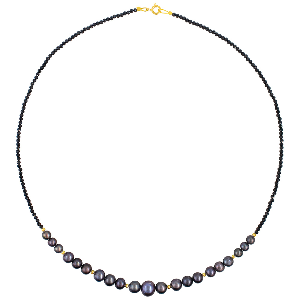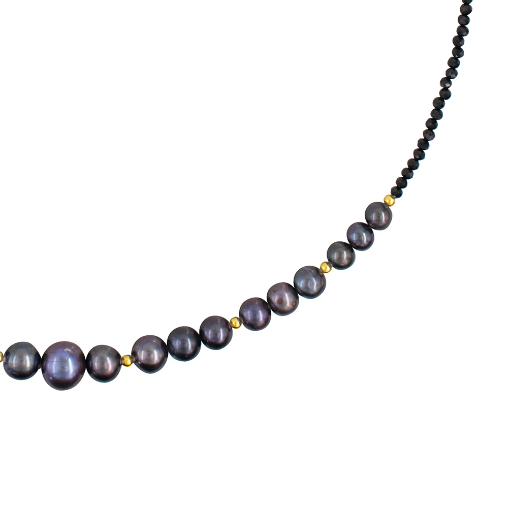 Νέο Κολιέ με Κ14 χρυσά στοιχεία, spinel και μαύρα μαργαριτάρια - F126494