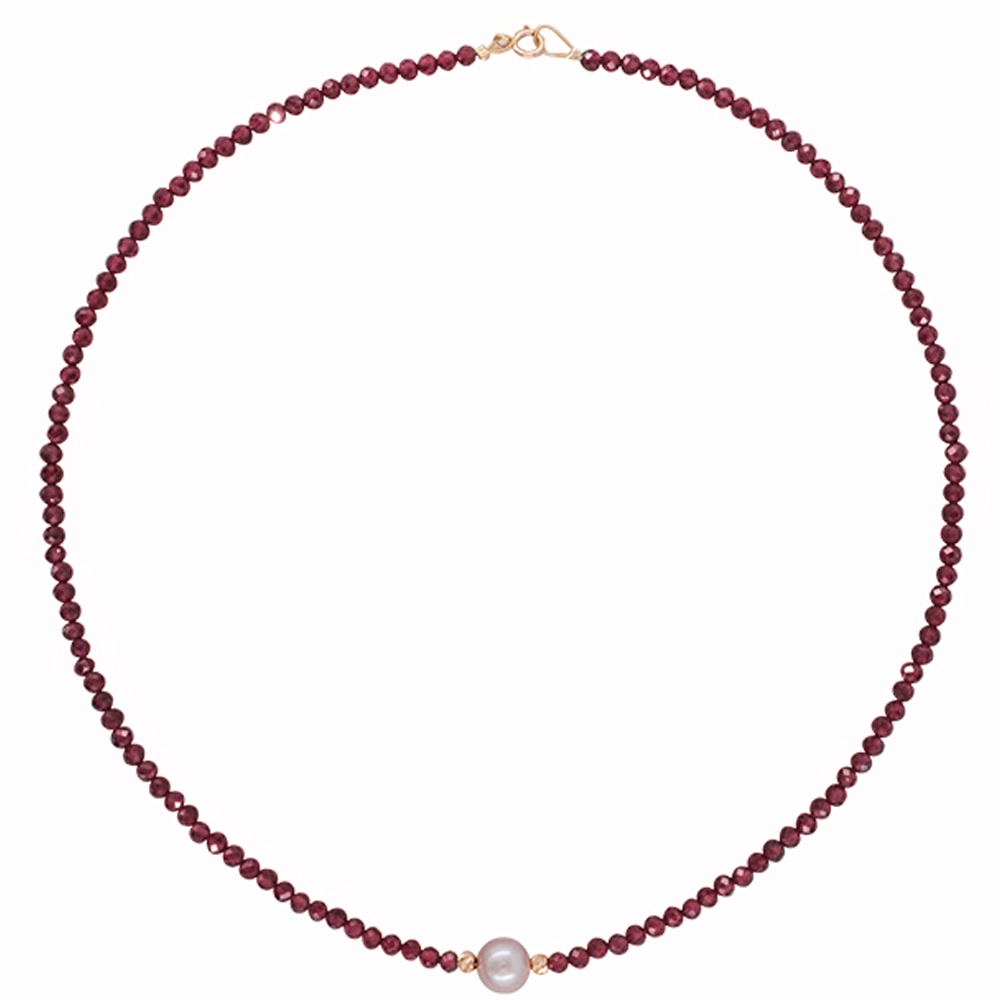 • Ένα υπέροχο κολιέ απο στρογγυλούς ημιπολύτιμους λίθους γρανάδας διαμέτρου 3-3,5 χιλιοστών και χρυσό κούμπωμα 14 καρατίων.
