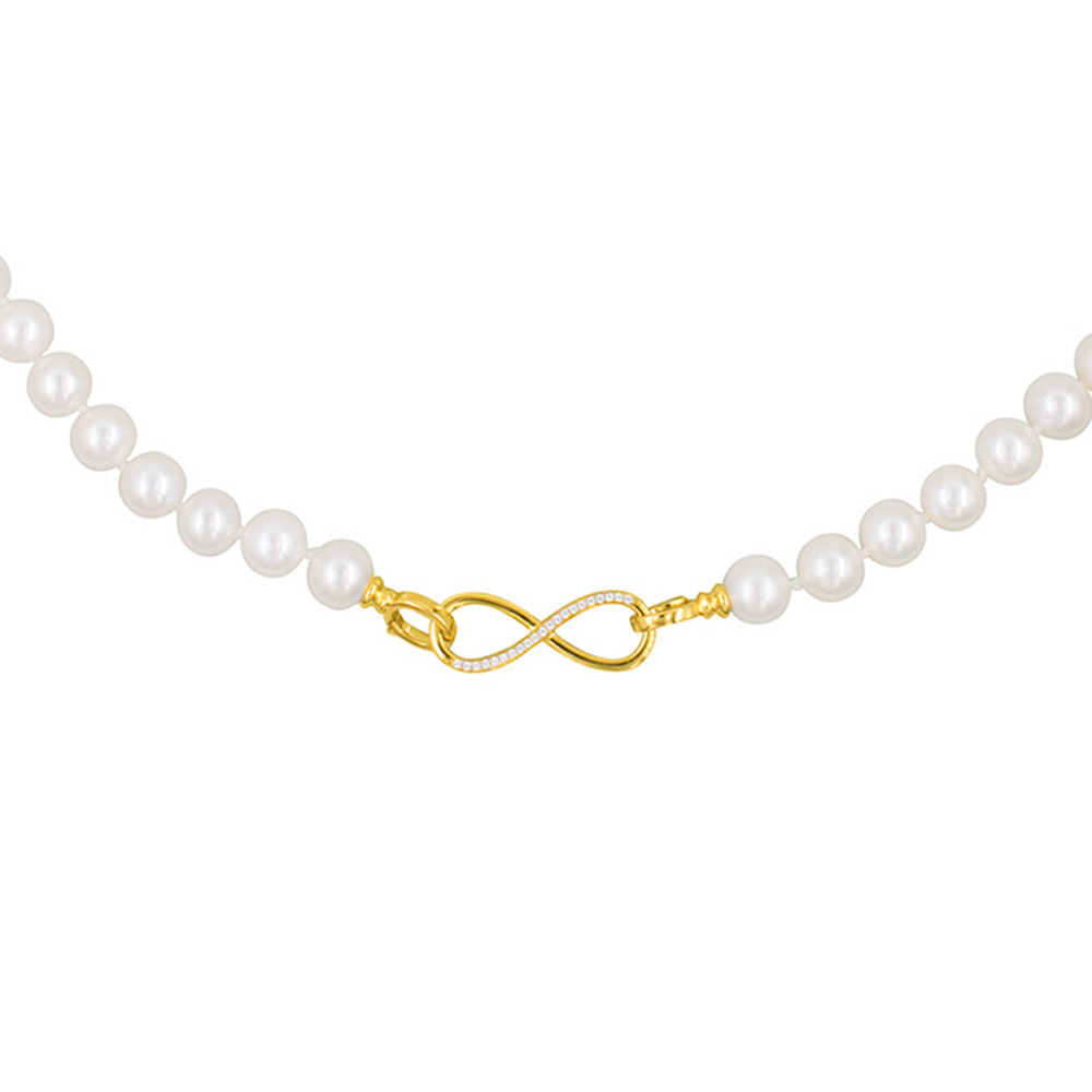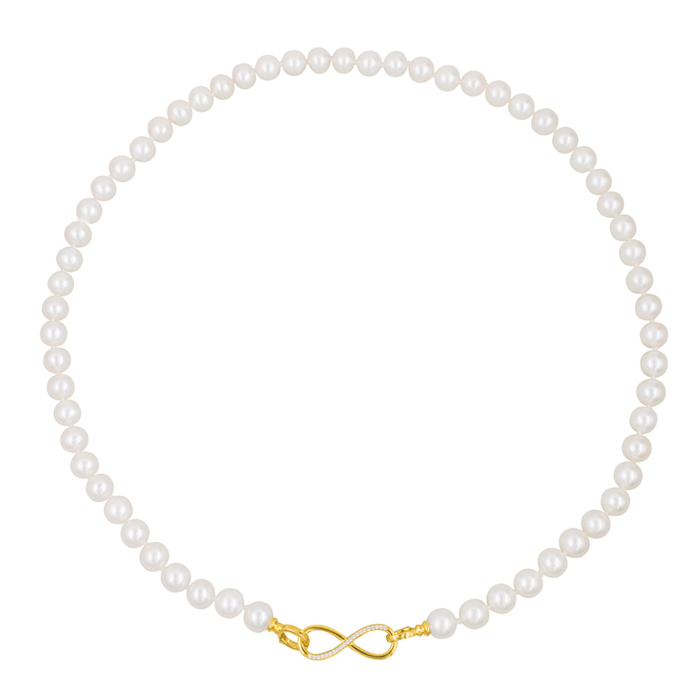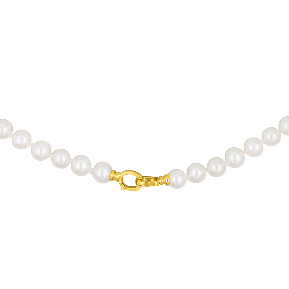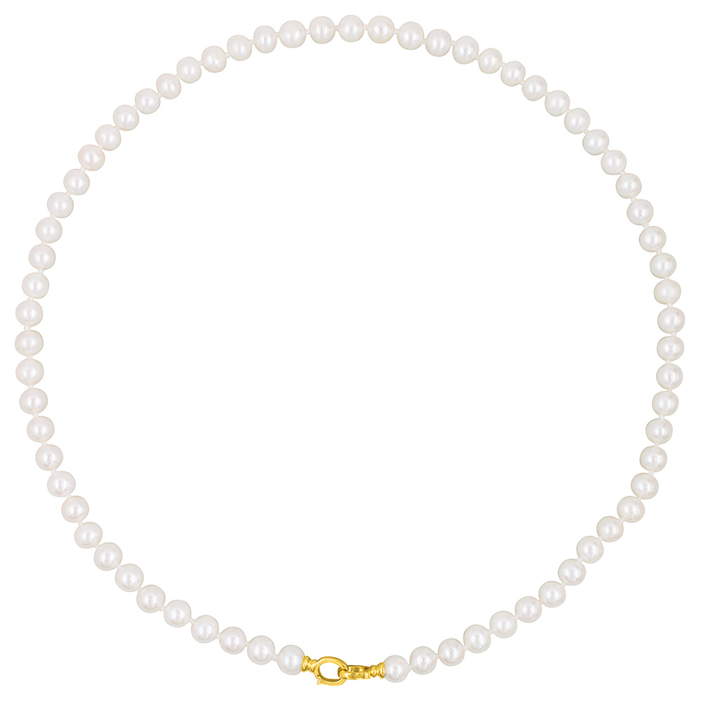 • Ένα υπέροχο κολιέ με λευκά στρόγγυλα μαργαριτάρια Fresh Water Pearl διαμέτρου 7 χιλιοστών.