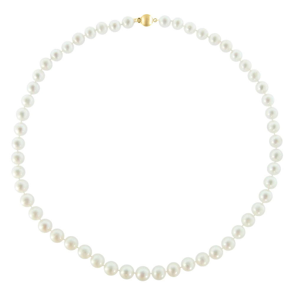 Κολιέ με Κ14 χρυσό κούμπωμα και λευκά μαργαριτάια 7-8 χιλιοστών - F125986