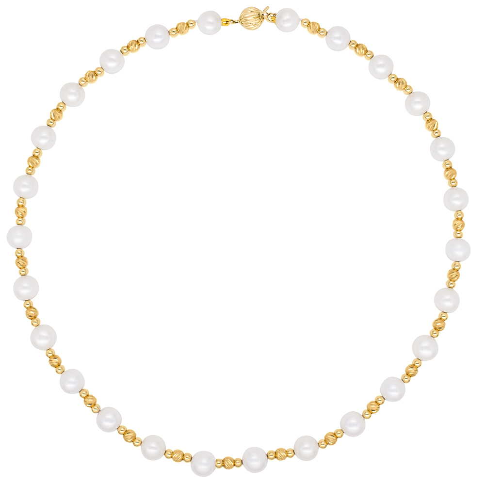 Κολιέ με Κ14 χρυσά στοιχεία και λευκά μαργαριτάρια - M124560