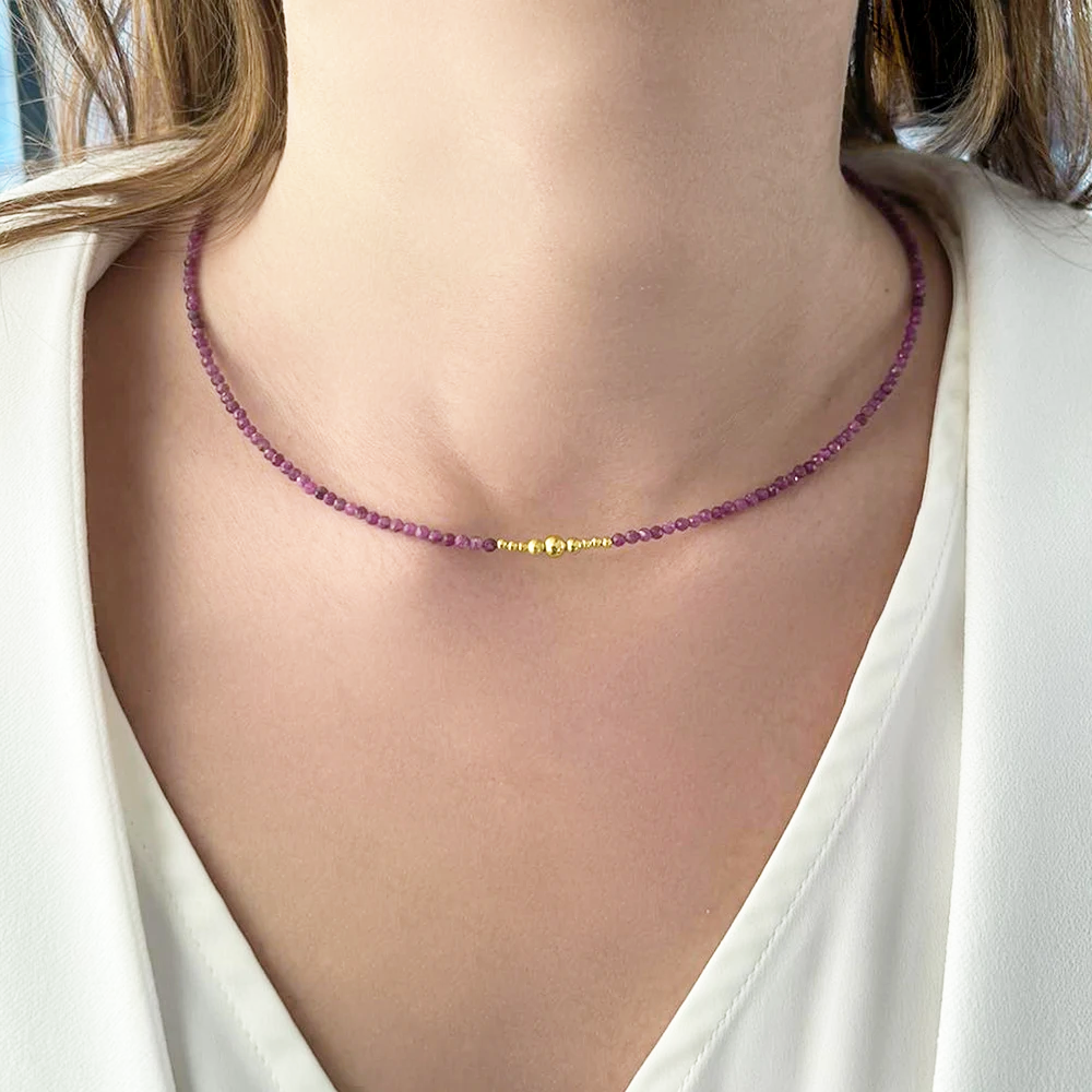 Κολιέ με Κ14 χρυσά στοιχεία και ρουμπινίτες - F125256