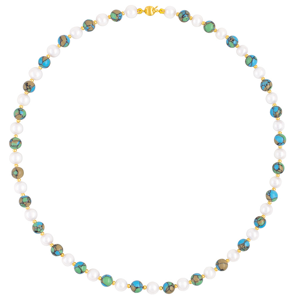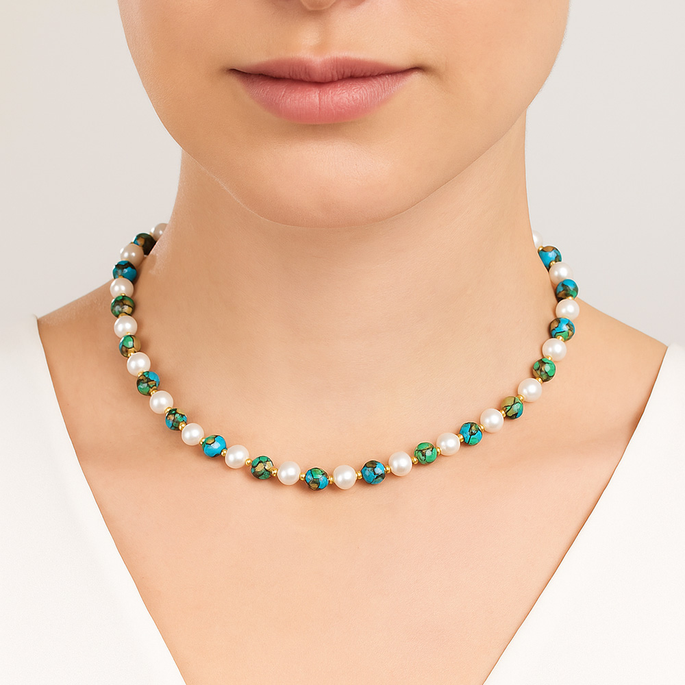 • Ένα υπέροχο κολιέ με λευκά μαργαριτάρια Fresh Water Pearl διαμέτρου 6-6,5 χιλιοστών σε σχήμα Round.