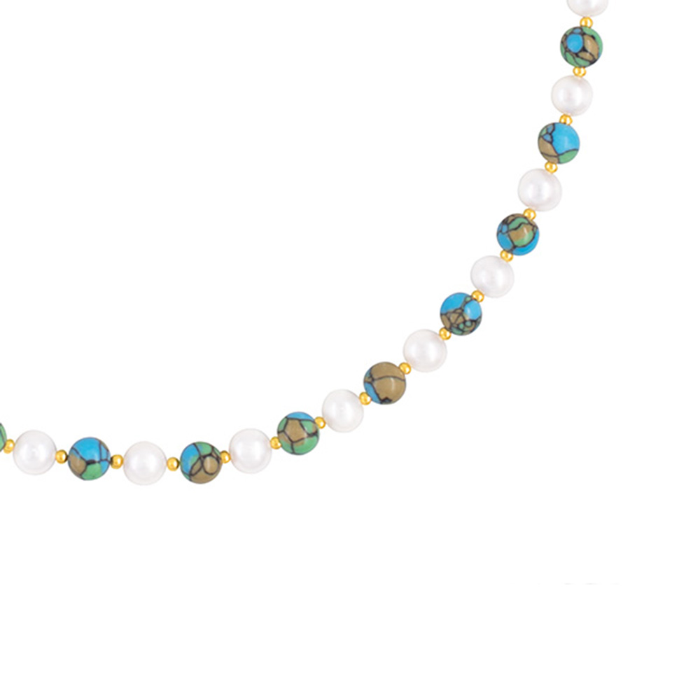 Ανάμεσα στα μαργαριτάρια και στους ημιπολύτιμους λίθους υπάρχουν 56 χρυσές μπίλιες 14 καρατίων.