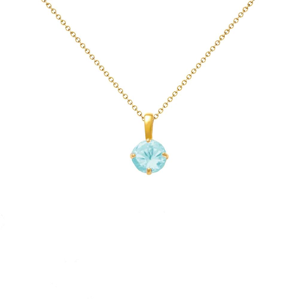 • Ένα υπέροχο κολιέ με χρυσή αλυσίδα 14 καρατίων μήκους 42 εκατοστών και ένα μενταγιόν χρυσό Κ14 με ημιπολύτιμο λίθο Aqua διαμέτρου 6x6 χιλιοστών.