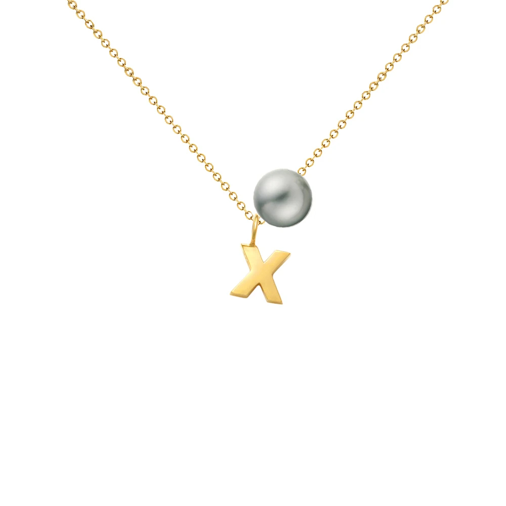 Μαζί με το μονόγραμμα στην χρυσή αλυσίδα υπάρχει και ένα γκρι μαργαριτάρι Fresh Water Pearl διαμέτρου 7,5 - 8 χιλιοστών σε σχήμα στρογγυλό, άριστης ποιότητας.