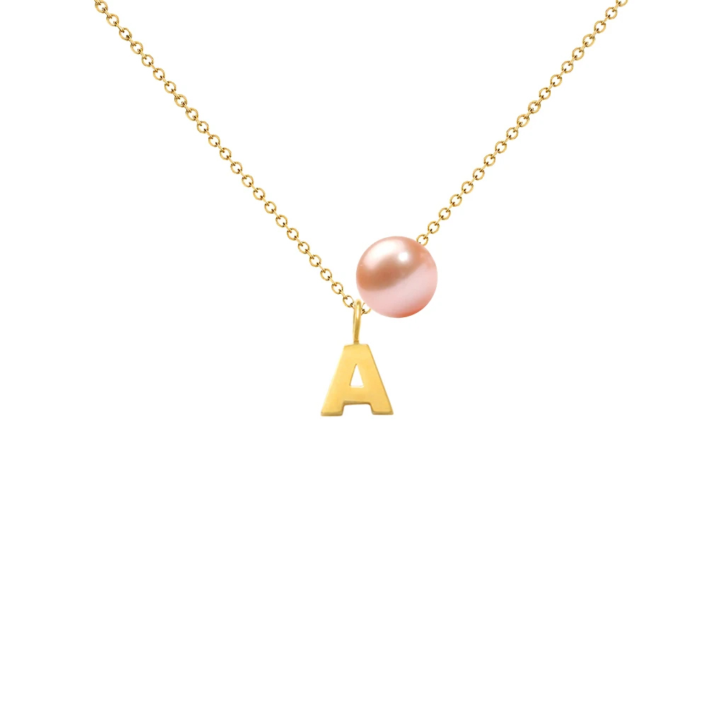 Μαζί με το μονόγραμμα στην χρυσή αλυσίδα υπάρχει και ένα σομόν μαργαριτάρι Fresh Water Pearl διαμέτρου 7,5 - 8 χιλιοστών σε σχήμα στρογγυλό, άριστης ποιότητας.