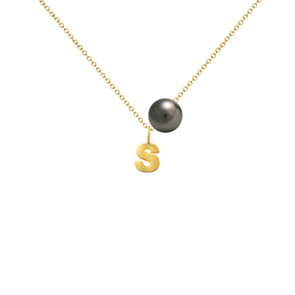 Μαζί με το μονόγραμμα στην χρυσή αλυσίδα υπάρχει και ένα μαύρο μαργαριτάρι Fresh Water Pearl διαμέτρου 7,5 - 8 χιλιοστών σε σχήμα στρογγυλό, άριστης ποιότητας.