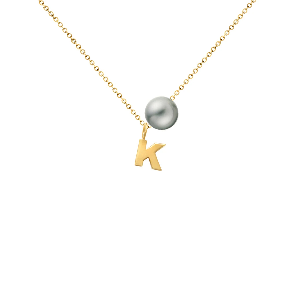 Μαζί με το μονόγραμμα στην χρυσή αλυσίδα υπάρχει και ένα γκρι μαργαριτάρι Fresh Water Pearl διαμέτρου 7,5 - 8 χιλιοστών σε σχήμα στρογγυλό, άριστης ποιότητας.