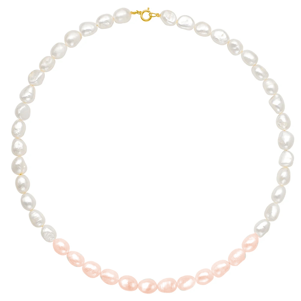 • Ένα υπέροχο κολιέ με εντυπωσιακά λευκά και σομόν ακατέργαστα φυσικά μαργαριτάρια διαμέτρου 7 x 11 χιλιοστών σε σχήμα Long