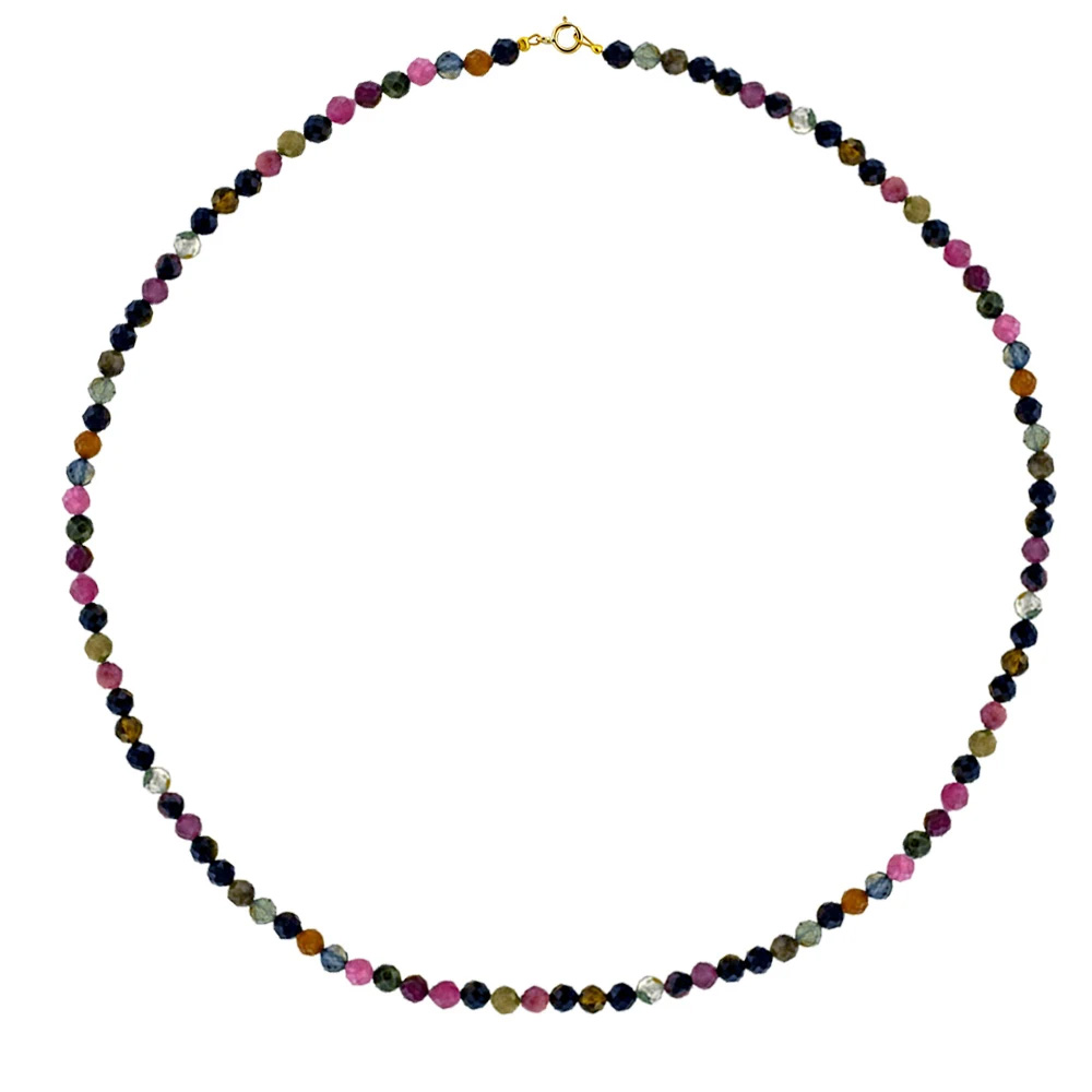 • Ένα υπέροχο κολιέ με φασεταρισμένο ημιπολύτιμο λίθο τουρμαλίνη διαμέτρου 3,5 χιλιοστών.