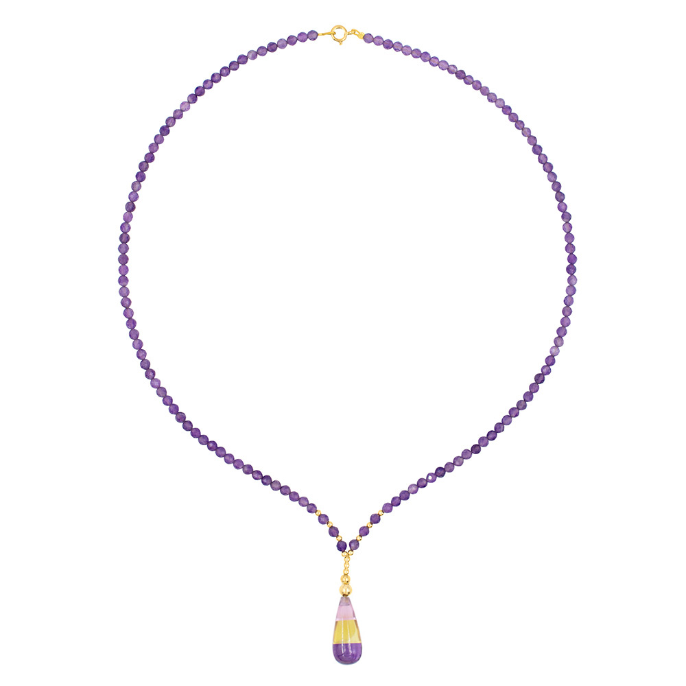 • Ένα υπέροχο κολιέ με στρόγγυλο φασεταρισμένο ημιπολύτιμο λίθο Amethyst διαμέτρου 4 χιλιοστών.