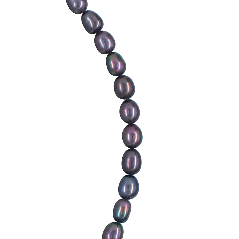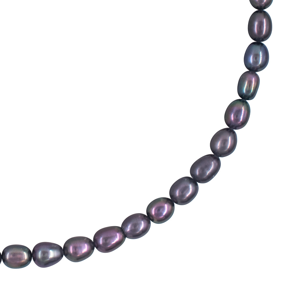 • Ένα υπέροχο κολιέ με μαύρα μαργαριτάρια Fresh Water Pearl διαμέτρου 7x8 χιλιοστών σε σχήμα long με εντυπωσιακούς ιριδισμούς.
