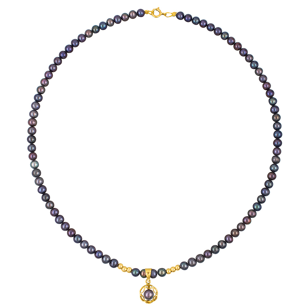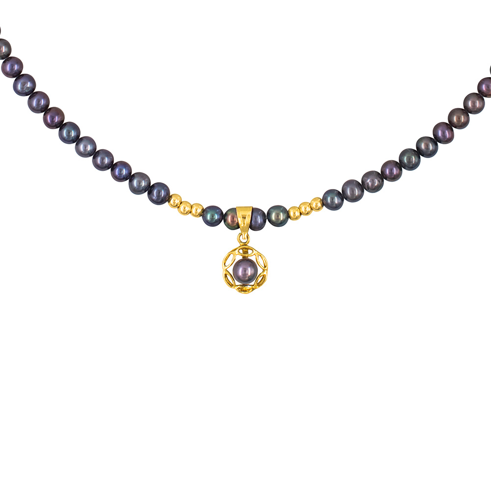 Κολιέ με Κ14 χρυσό μενταγιόν και μαύρα μαργαριτάρια - F124770