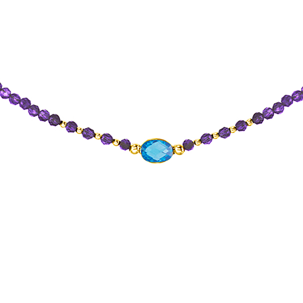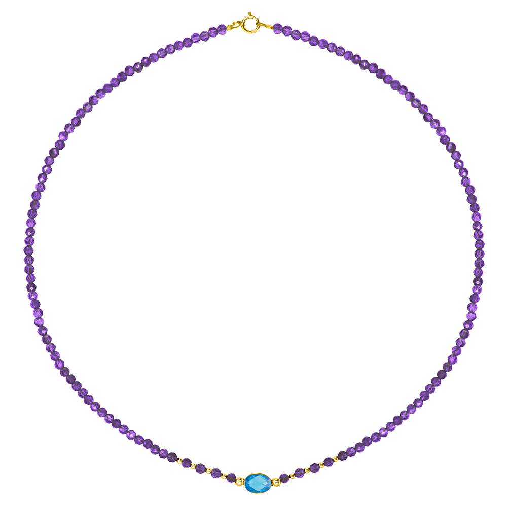 Κολιέ με Κ14 χρυσά στοιχεία, αμέθυστο και blue topaz - F124145B
