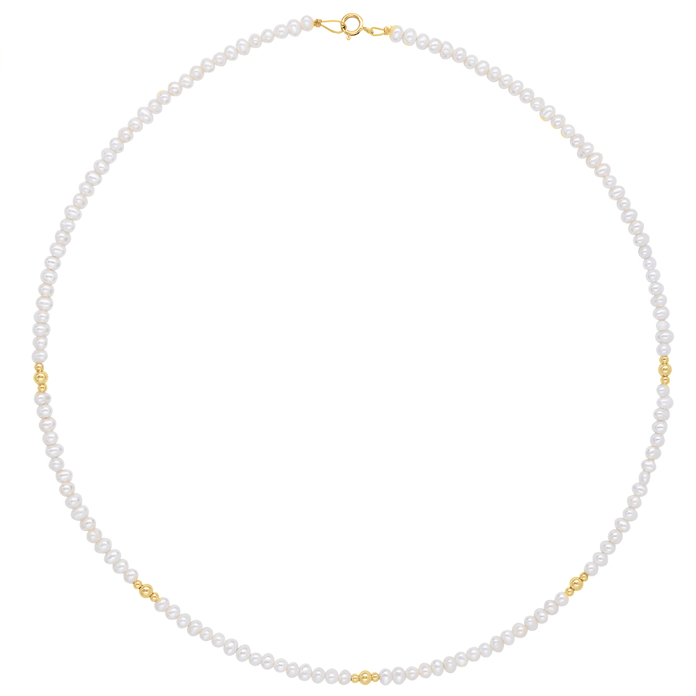Κολιέ με Κ14 χρυσά στοιχεία και λευκά μαργαριτάρια - F125099